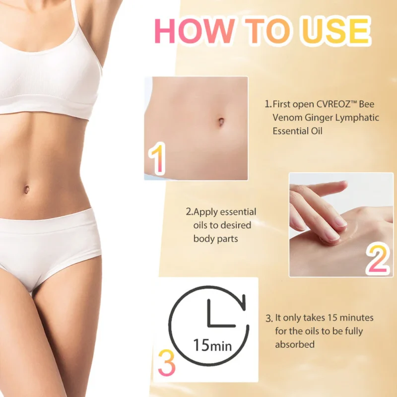 The digestive and lymphatic systems are important detoxification pathways in the body. Therefore, we developed ππππππβ’ πππ πππ§π¨π¦ ππ’π§π π π« ππ²π¦π©π‘πππ’π ππ¬π¬ππ§ππ’ππ₯ π π’π₯, which contains bee venom, collagen, extracts of absinthe and iceplant, and extracts of four natural herbs. These highly active ingredients are concentrated and encapsulated in essential oils. To use, first apply our essential oils so that the desired body part and the oils absorb into each other. It effectively promotes blood circulation and lymphatic drainage by stimulating multiple reflex points in the body, reducing fluid and cellulite buildup, enhancing metabolism, easy weight loss, reducing inflammation, and promoting good health.