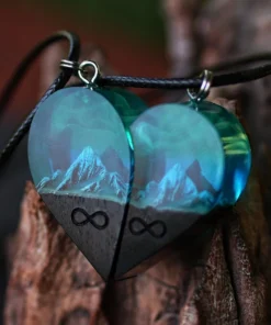 (🎄Early Christmas Sale🎄 – 40% OFF)Wood Resin Paired Heart Pendants Mountains