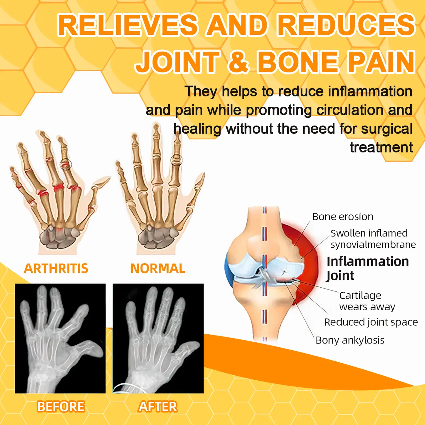 - Melittin in bee venom has a strong anti-inflammatory effect, which can reduce the inflammatory response in arthritis, thereby reducing joint pain and swelling and improving joint mobility.