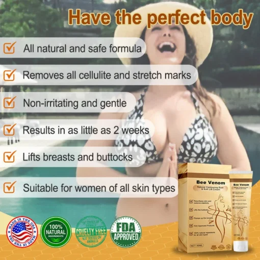 ๐๐ฎ๐๐ซ๐จ๐ฌโข ๐๐๐ ๐๐๐ง๐จ๐ฆ ๐๐๐ญ๐ฎ๐ซ๐๐ฅ ๐๐จ๐ง๐ญ๐จ๐ฎ๐ซ๐ข๐ง๐ ๐๐ฎ๐ฌ๐ญ & ๐๐ฎ๐ญ๐ญ ๐๐ข๐๐ญ ๐๐ซ๐๐๐ฆ is a solution that utilizes the powerful properties of bee venom to effectively treat sagging skin, breasts and buttocks. This advanced formula is enriched with active compounds extracted from bee venom that stimulate protein regeneration, thus addressing the underlying problem of sagging and helping with secondary development.