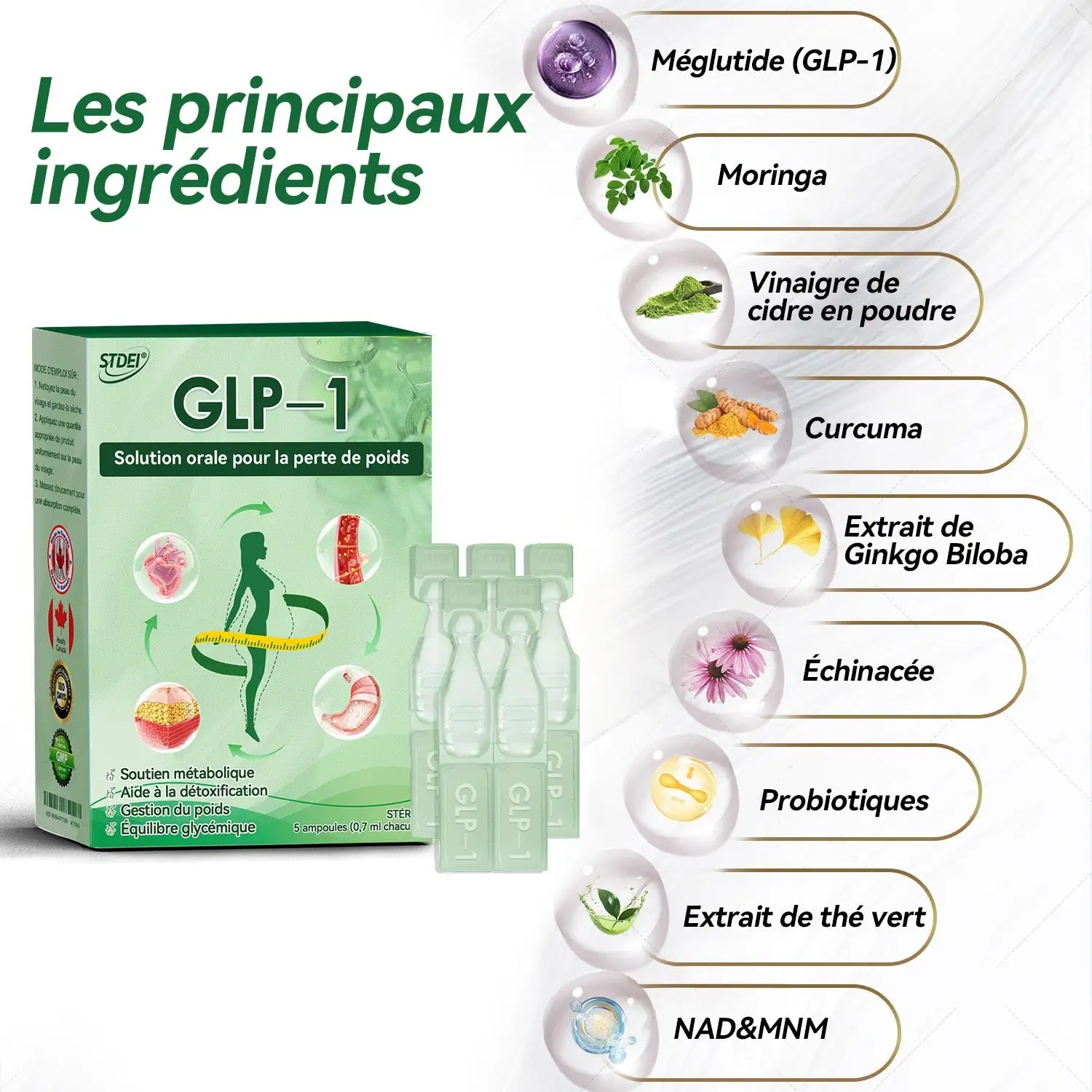 ย ย Sรปr et efficace :ย Fabriquรฉ ร partir d’ingrรฉdients naturels et d’une formule scientifiquement prouvรฉe, notre liquide oral est certifiรฉย CEย et GMPย pour sa qualitรฉ et sa sรฉcuritรฉ. Il favoriseย le mรฉtabolisme, l’รฉquilibre glycรฉmique, le contrรดle de l’appรฉtit et une perte de graisse saineย , favorisant ainsi la vitalitรฉ globale.