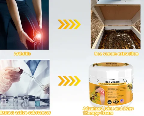 Le venin d’abeille est un type de poison sรฉcrรฉtรฉ par les abeilles, contenant une variรฉtรฉ de substances biologiquement actives. Le principal composant du venin d’abeille est la mรฉlittine, une protรฉine biologiquement active sรฉcrรฉtรฉe par les glandes ร aiguilles des abeilles. Elle possรจde un puissant effet anti-inflammatoire et analgรฉsique, soulageant efficacement la douleur et le gonflement associรฉs ร l’arthrite. Le venin d’abeille contient รฉgalement des enzymes, des acides aminรฉs, des sucres, des lipides et des vitamines, contribuant ร la rรฉparation des tissus articulaires, ร l’amรฉlioration de l’รฉlasticitรฉ et de la mobilitรฉ des articulations.