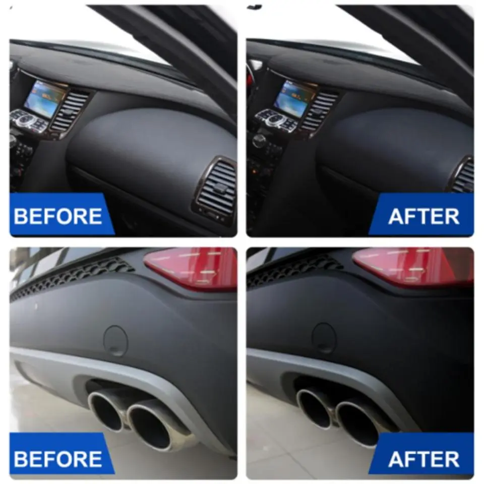 Our Car Plastic Restorer will not only make your dull plastic and trim shine, but it will also protect the plastics and trim on your new vehicle! By applying our restorer & protectant, you can prevent premature wear and fading caused by UV rays and road grime!