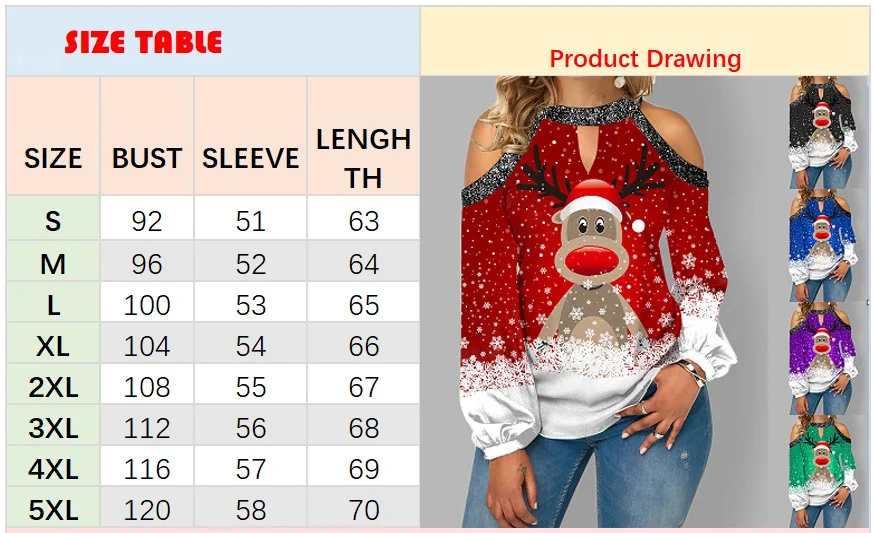 2021 New Fashion Christmas Elk Print Sequin Off Shoulder Top Long Sleeve T-Shirt