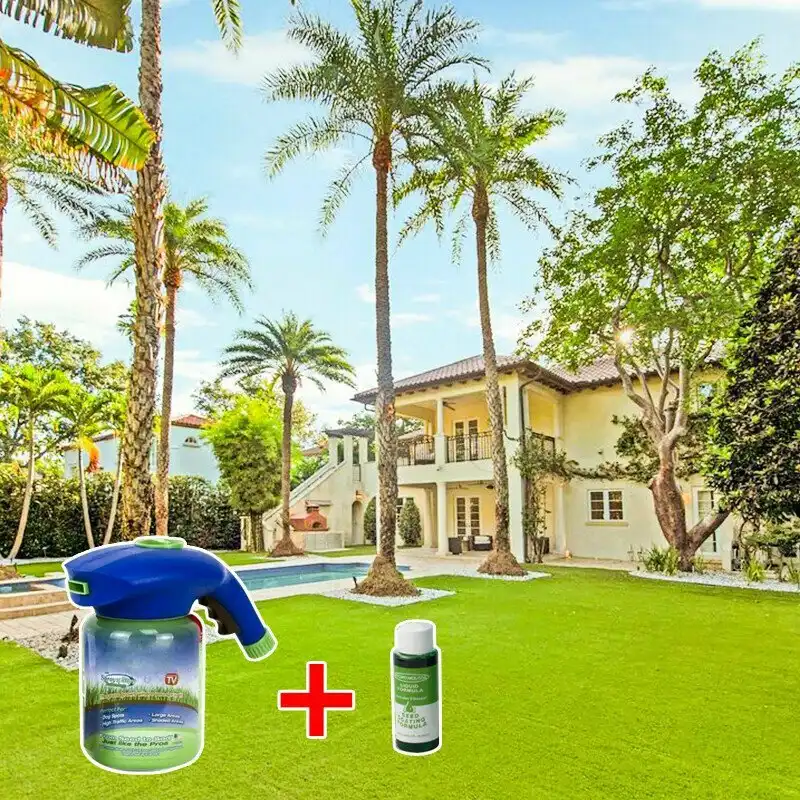 Say goodbye to those dry spots, dog spots, high traffic areas, and shade. Green Grass Lawn Spray lets you easily plant and grow new grass exactly where you want it.