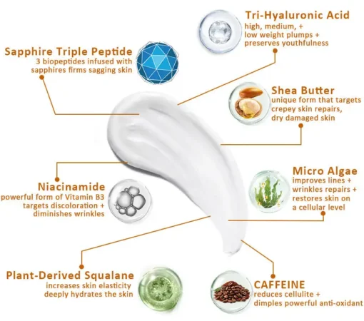 ✓ Multiple Benefits: The cream addresses various skin concerns, including reducing the appearance of cellulite, improving skin elasticity, and diminishing stretch marks.