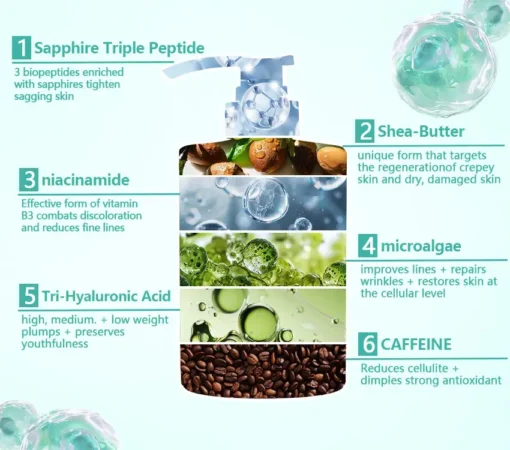 Our formula hinders the aging process by utilizing a potent peptide complex. It lifts your skin from neck to toe, minimizing creases and wrinkles for a smoother, more firm complexion. This advanced cream not only revitalizes your skin but also hydrates and plumps it, establishing a deep moisture barrier.
