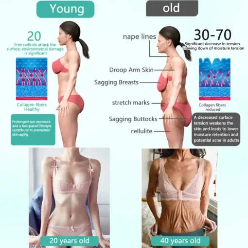 As individuals age, their bodies undergo the natural effects of aging. This typically starts in their early twenties when collagen production, essential for skin structure, begins to decline, and the elasticity of elastin, which ensures skin resilience, weakens. These changes are particularly pronounced in women. Additionally, the shedding of dead skin cells may become slower, while the generation of new skin cells may gradually decrease, leading to the development of sagging and wrinkles across the body’s skin tissue.