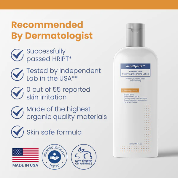 “For years, I battled with persistent back acne, experimenting with numerous products to no avail. However, my search for an effective solution came to an end when I stumbled upon this incredible AcneXpert+™ Blemish Skin Clarifying Cleansing Lotion. This remarkable product has truly revolutionized my skin! Within just a few weeks of incorporating it into my skincare routine, I witnessed a significant reduction in back acne, and my skin became noticeably smoother and silkier. The results have been nothing short of amazing, allowing me to confidently reveal my back without any self-consciousness. I wholeheartedly endorse this Cleansing Lotion to those grappling with back acne—it genuinely delivers!” – Henry Perez, Kennett, MO