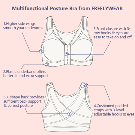 This multi-functional bra also offers firm control to your back and shoulder for a sleeker, slimmer silhouette.It pull your upper body to natural alignment while smoothing out unwanted bulges using high-back panel, criss-cross supporting bands and adjustable straps with figure hugging comfort.