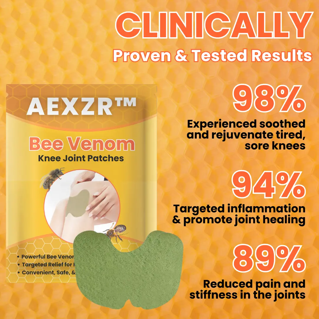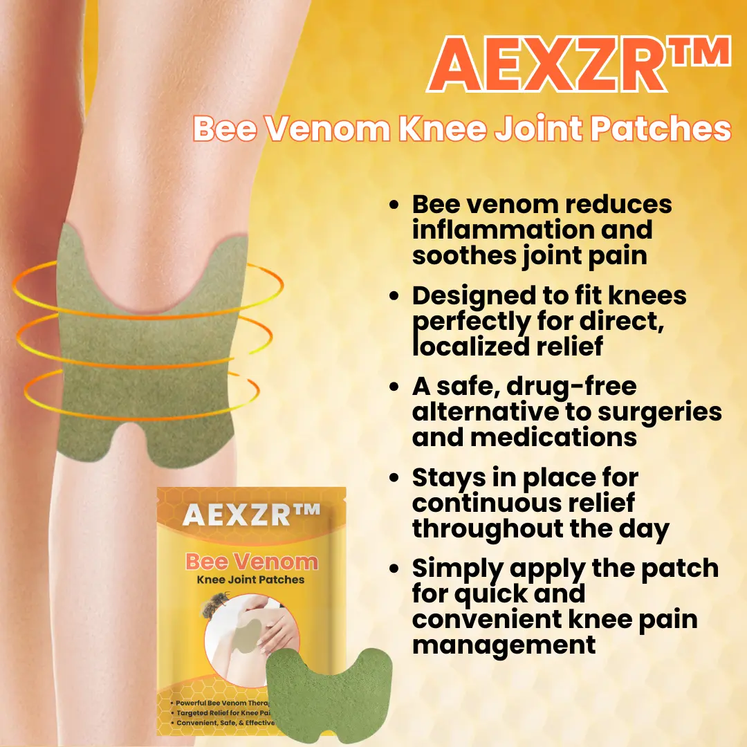 AEXZR™ Bee Venom Knee Joint Patches harness the therapeutic power of bee venom to provide rapid, targeted relief from knee pain. These patches deliver bee venom directly to the affected area through a convenient, user-friendly transdermal system, ensuring quick absorption and long-lasting pain alleviation. Designed to reduce inflammation, enhance circulation, and ease stiffness, AEXZR™ patches are an ideal solution for those seeking a natural, effective method to manage knee discomfort without relying on invasive procedures or medications. Whether you suffer from arthritis, joint stiffness, or muscle soreness, AEXZR™ Bee Venom Knee Joint Patches can help you move with greater comfort and confidence.