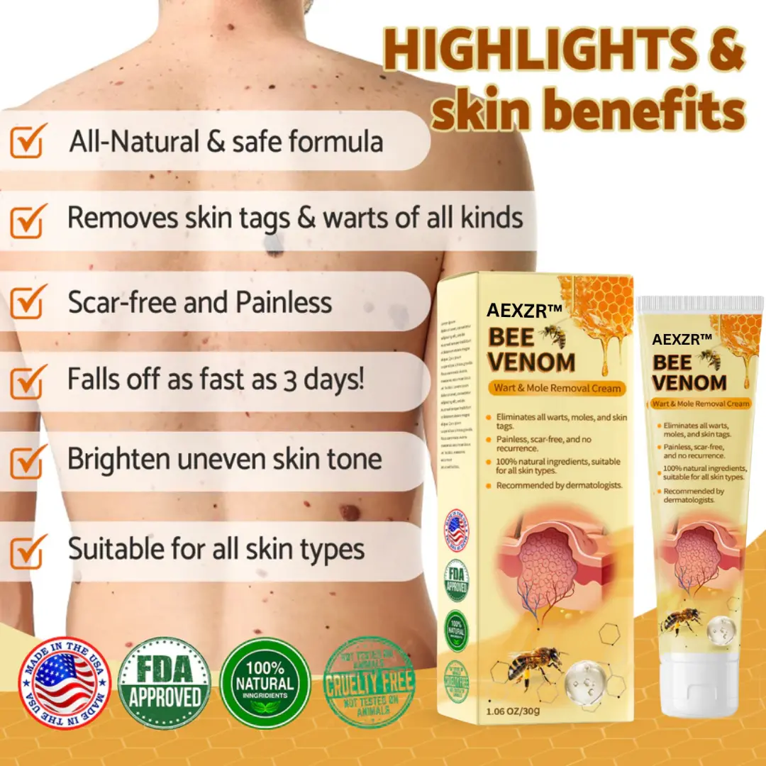 Package Includes: 1 x AEXZR™ Bee Venom Mole and Wart Treatment Cream
