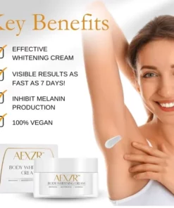 AEXZR™ Body Whitening Cream is specifically formulated to target these problem areas and effectively reduce the appearance of dark spots and uneven skin tone. Its powerful ingredients work together to inhibit melanin production, promote skin cell turnover, and restore radiance to dull and discolored skin. With regular use, AEXZR™ Body Whitening Cream can help you achieve visibly lighter and smoother skin in these troublesome areas, and boost your confidence to rock your favorite outfits with pride! Say goodbye to darkened skin and hello to a brighter, more even-toned complexion with AEXZR™ Body Whitening Cream. Try it now and experience the transformation!
