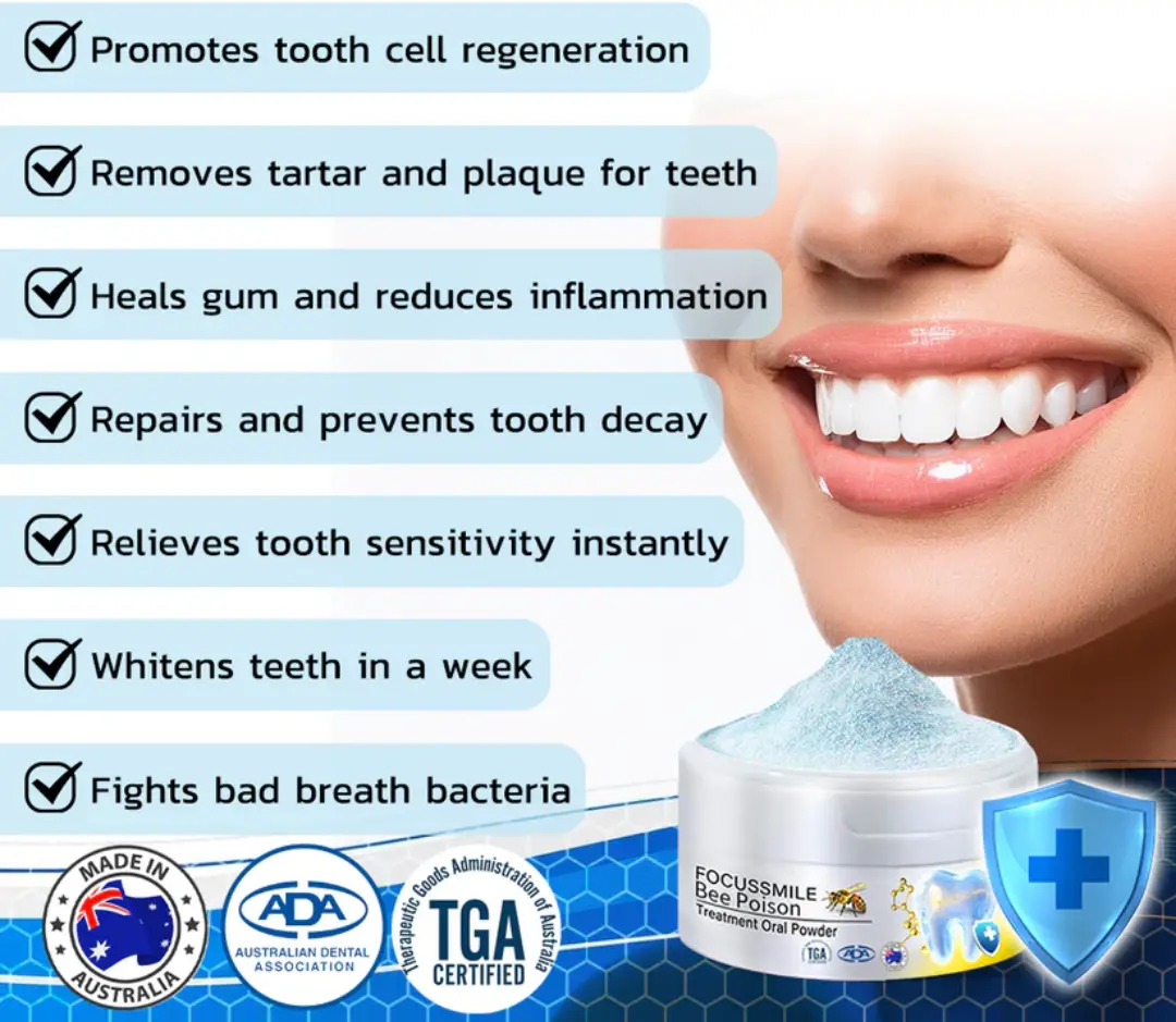 🌿Then our AEXZR™ Focussmile Bee Poison Treatment Oral Powder is perfect for you! Working closely with leading experts in the field of naturopathy and apitherapy, we have developed a revolutionary tooth powder that harnesses the healing powers of natural Melittin to fight a wide range of Various gum diseases ailments. AEXZR™ Focussmile Bee Poison Treatment Oral Powder is your enabler to a pain-free, healthier life that allows you to fully enjoy your days.