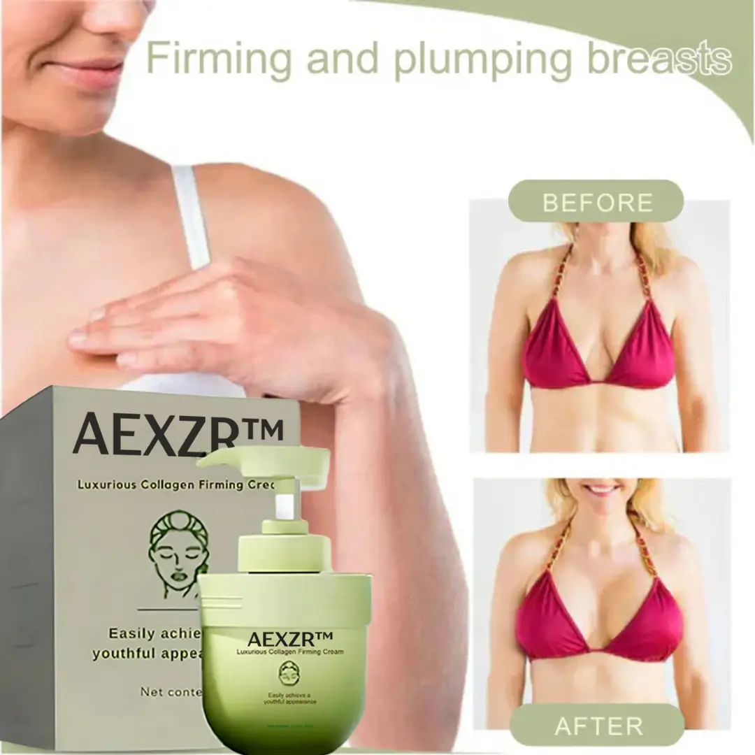 AEXZR™ Luxurious Collagen Firming Cream stimulates the formation of fat cells around the breasts through a painless and non-invasive process. As a result, the breasts look larger, rounder, firmer and more upright.