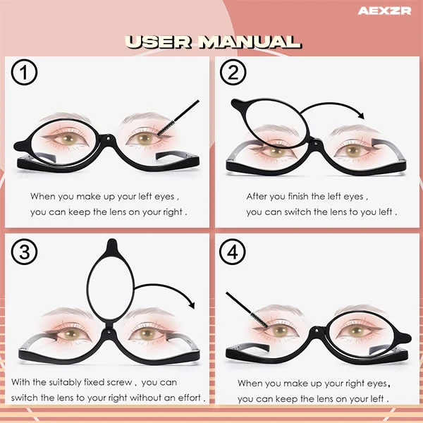 PACKAGE INCLUDES: 1 x Aexzr™ Magnifying Flip-Lens Cosmetic Eye Glasses