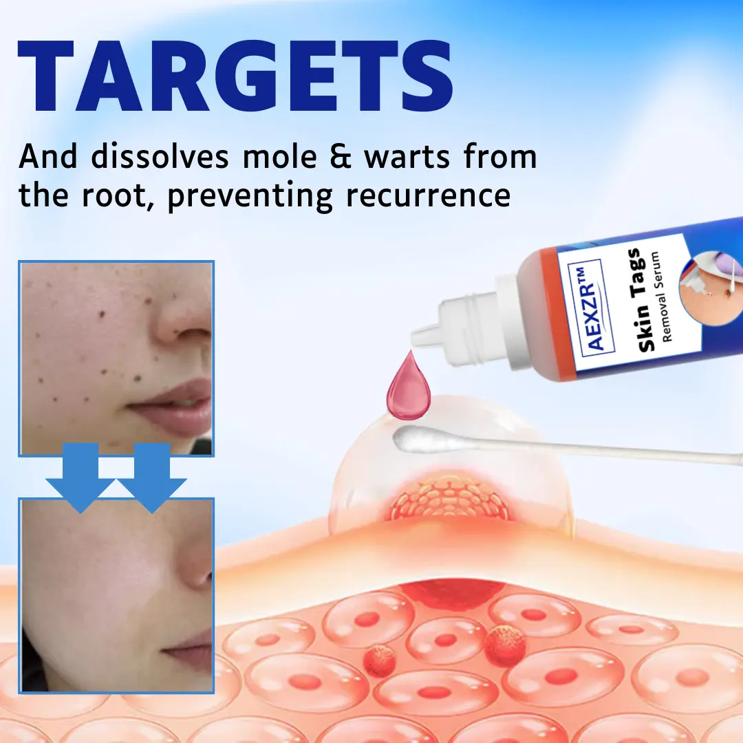The serum’s blend of herbal extracts, renowned for their antiviral and anti-inflammatory properties, addresses not only the external appearance of the skin tag or mole but also the underlying causes. For warts, which result from a viral infection, AEXZR™ works to inhibit viral activity, thereby reducing the likelihood of recurrence. In the case of moles, the serum targets pigmented cells, gradually breaking them down to eliminate dark spots without harming the surrounding healthy skin. This ensures that the removal process is gentle yet highly effective, leaving the skin intact and free from irritation or damage. Additionally, the serum promotes skin elasticity, enhancing the overall appearance and resilience of the skin.