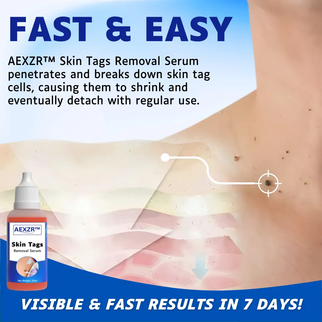 AEXZR™ Skin Tags Removal Serum provides a gentler and more natural alternative to conventional skin tag removal methods such as cutting, freezing, or tying off. Traditional procedures can be painful and invasive, often resulting in scarring or irritation. In contrast, AEXZR™ operates by penetrating the root of the skin tag with active herbal ingredients, triggering a natural immune response that breaks down the tissue. As the tag dries out and detaches, a small scab forms, indicating the completion of the removal process. This non-invasive approach allows the body to heal naturally, leaving the skin smooth without discomfort or scarring. Furthermore, AEXZR™ offers an effective, painless, and skin-friendly solution that can be applied at home, making it a preferred alternative to more aggressive treatments.