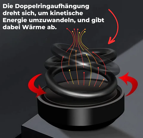 Die AEXZR™ Tragbare Kinetische Mini-Heizung verfügt über ein innovativ Doppelring-Aufhängungssystem, das ihrer Funktionalität einen Hauch von Eleganz verleiht. Wenn sie aktiviert werden, führen diese Doppelringe eine fesselnde Drehbewegung aus. Diese Bewegung initiiert die Freisetzung kinetischer Energie, und diese Energie wird speziell für die wesentliche Aufgabe der Erwärmung Ihrer Umgebung kanalisiert.