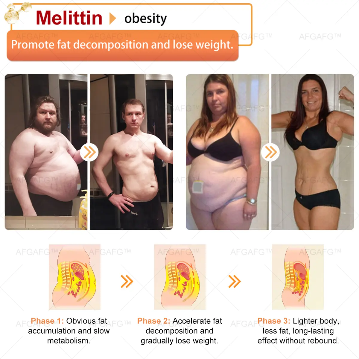 Melittin accelerates the fat breakdown process. By stimulating blood circulation and fat-splitting enzymes under the skin, it helps reduce excess fat accumulation and firms the skin.