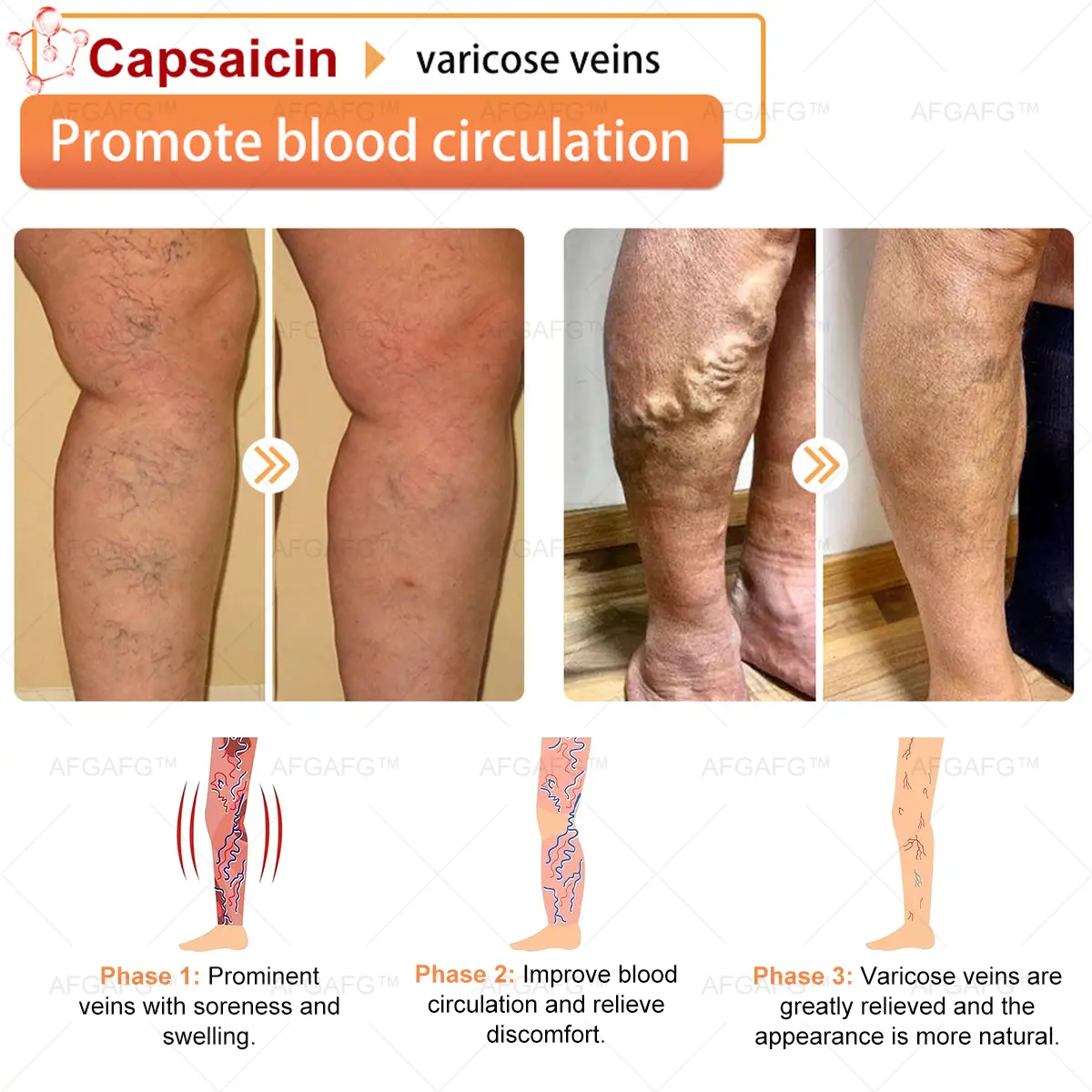 Capsaicin stimulates blood flow, easing the discomfort caused by varicose veins. It improves blood vessel elasticity, relieving pressure around the veins to effectively alleviate varicose vein symptoms.