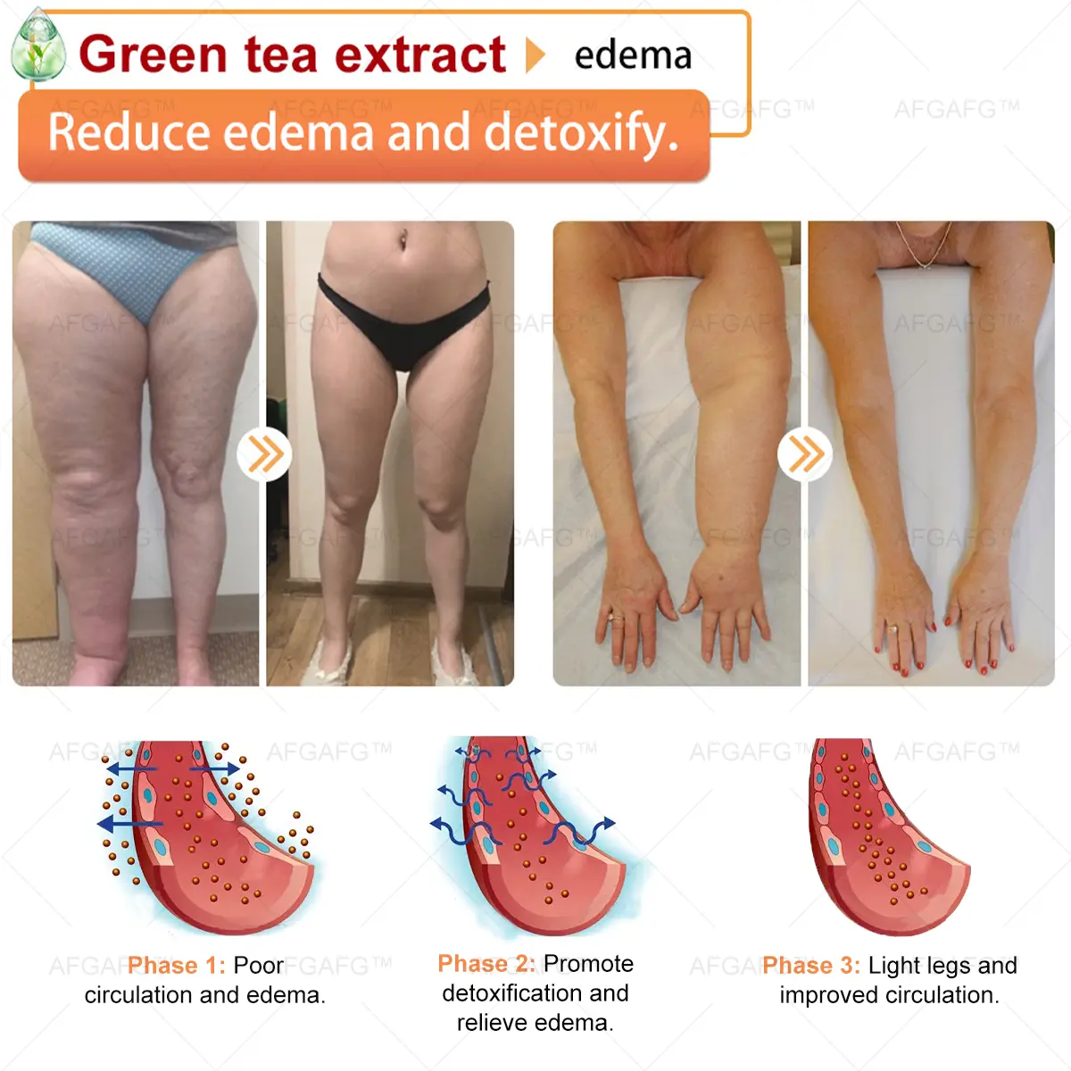 Green tea extract promotes lymphatic circulation, helping the body remove excess water and toxins to reduce swelling and water retention.