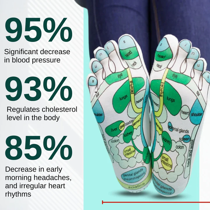 Althea™ Blood Pressure-Regulating Socks are perfect for anyone looking to improve their cardiovascular health and overall well-being. They work by stimulating the acupoints on the feet that are connected to various organs of the body, which, in turn, can promote the flow of blood and reduce blood pressure. Simply apply pressure for 5 minutes to each of the three major organs: liver, kidney, and heart daily.