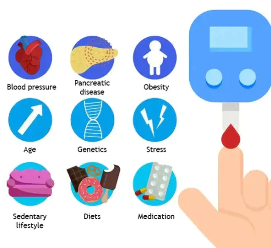 Diabetes is a chronic condition characterized by elevated levels of glucose (sugar) in the blood. There are several factors that can contribute to high blood sugar levels, including poor diet, lack of exercise, stress, hormonal imbalances, medications, and other health conditions.