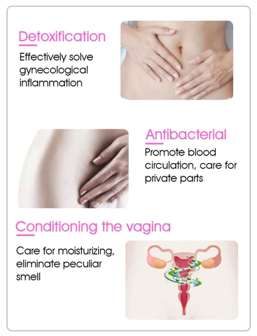 Helps the vagina restore the balance of normal vaginal flora and inhibits the reproduction of harmful flora such as Staphylococcus aureus, Candida albicans, Escherichia coli, and so on. Effectively eliminates vaginal odor and bacterial inflammation. Unblocks the body’s detoxification channels to help slim down.