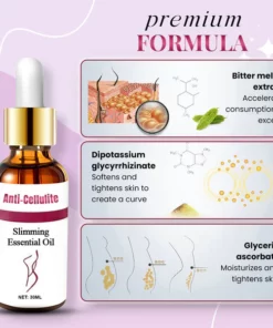 Anti-Cellulite- Get rid of lumpy textured skin with the Anti-Cellulite Slimming Essential Oil. The Anti-Cellulite Slimming Essential Oil effectively eliminates cellulite on almost any part of your body.