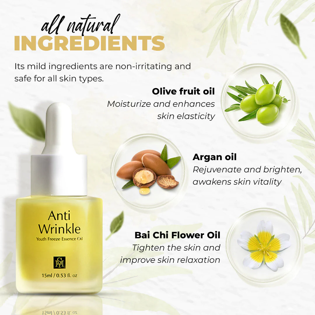 Anti-Wrinkle Youth Freeze Essence Oil is a potent anti-aging product that helps you to fight the effects of aging on your skin and promote skin renewal. It does this by hydrating and nourishing the skin, reducing wrinkles and fine lines, and also preventing new ones from forming. It contains a blend of natural oils and botanical extracts that work together to ensure that your skin stays smooth and supple. It also helps prevent moisture loss from the skin while improving elasticity and preventing dullness, dryness, and uneven texture.