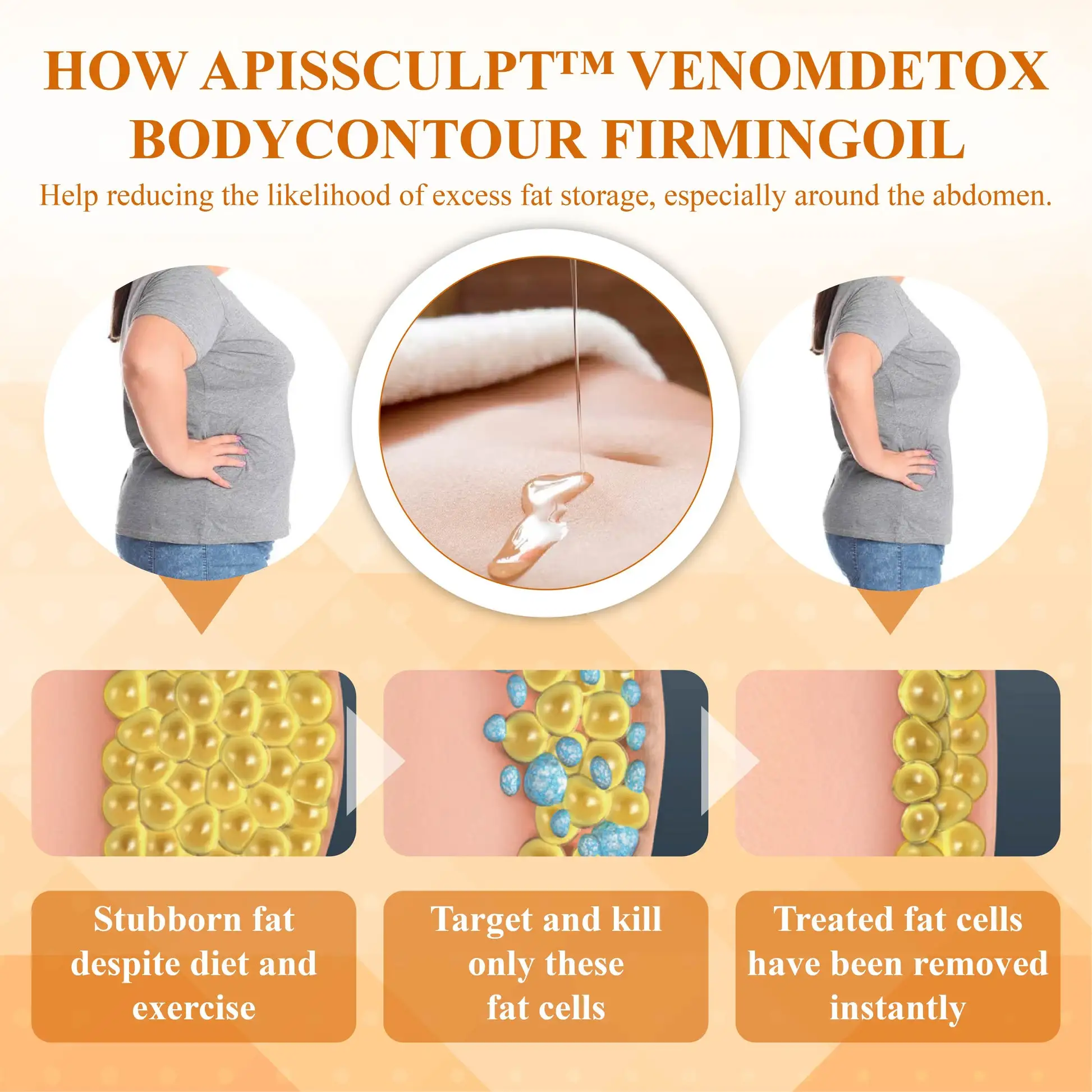 ApisSculpt™ VenomDetox BodyContour FirmingOil utilizes concentrated Apis venom to provide both immediate and long-term slimming and firming effects. The powerful compounds in Apis venom stimulate circulation and enhance metabolic processes, promoting the breakdown of stored lipids and reducing puffiness. Regular use of this oil helps firm and contour the body, delivering noticeable results over time while leaving the skin smooth and toned.