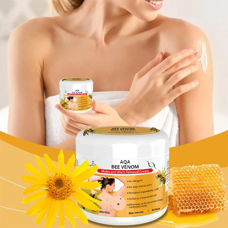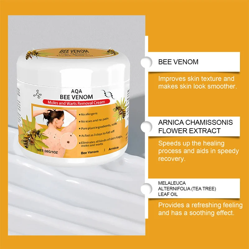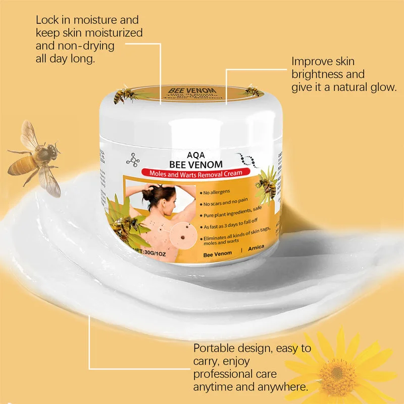 Royal Bee Wart Removal Cream is a topical ointment that is widely used to treat skin warts, moles and other conditions. Natural Ingredients: The main ingredients of Bee Balm Wart Remover Cream are natural ingredients such as Bee Venom, Arnica Extract, Melaleuca alternifolia Leaf Oil and Sapindales Leaf Extract, which are safer and gentler compared to chemical ingredients.