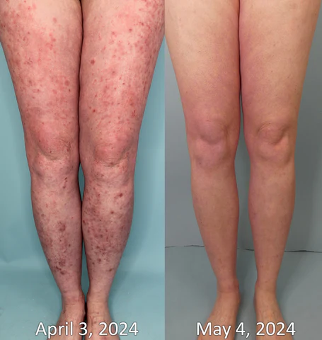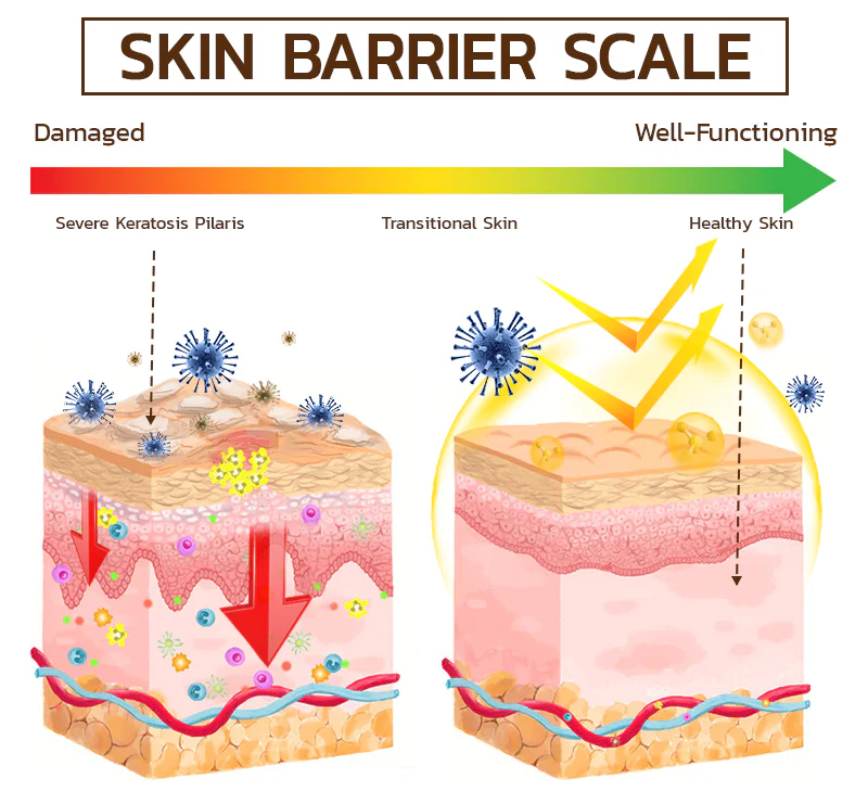 This complementary action helps alleviate the redness, itching, and rough, bumpy appearance characteristic of keratosis pilaris, providing a natural solution to manage this skin condition.