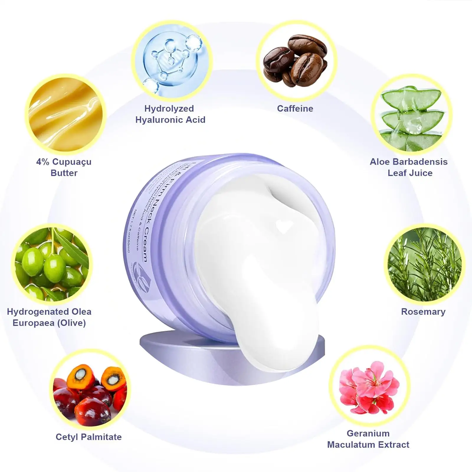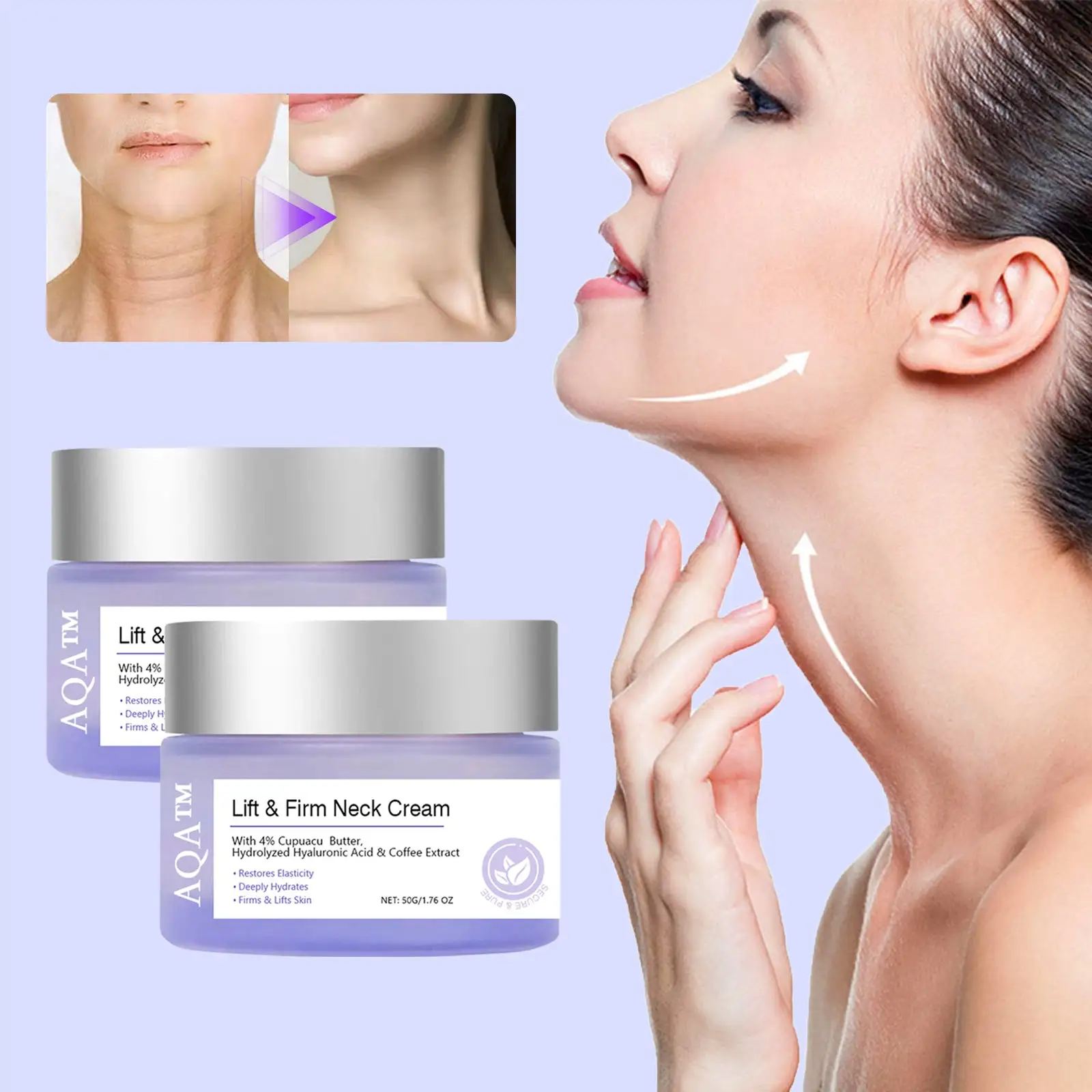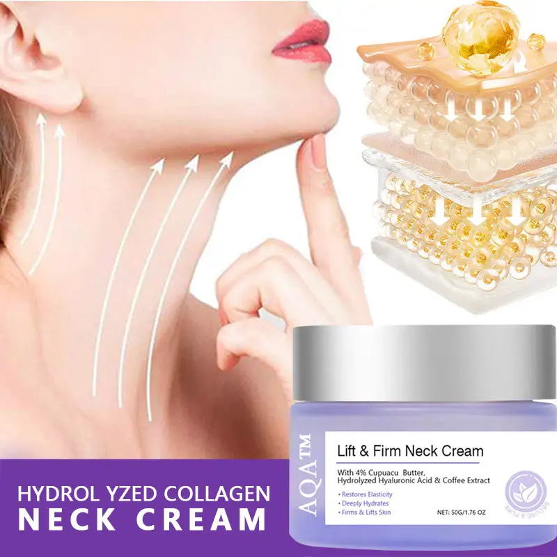 AQA™ Hydrolyzed Collagen Neck Cream combines hydrolyzed collagen, Aloe Vera, and Centella to deeply hydrate and nourish the skin. It enhances elasticity and reduces fine lines and wrinkles. By stimulating collagen production, caffeine, lifts and firms the neck, diminishes wrinkles, and supports skin renewal. This cream also brightens, relieves skin tension, and balances complexions for a clear, youthful appearance when used regularly as part of a daily skincare routine.