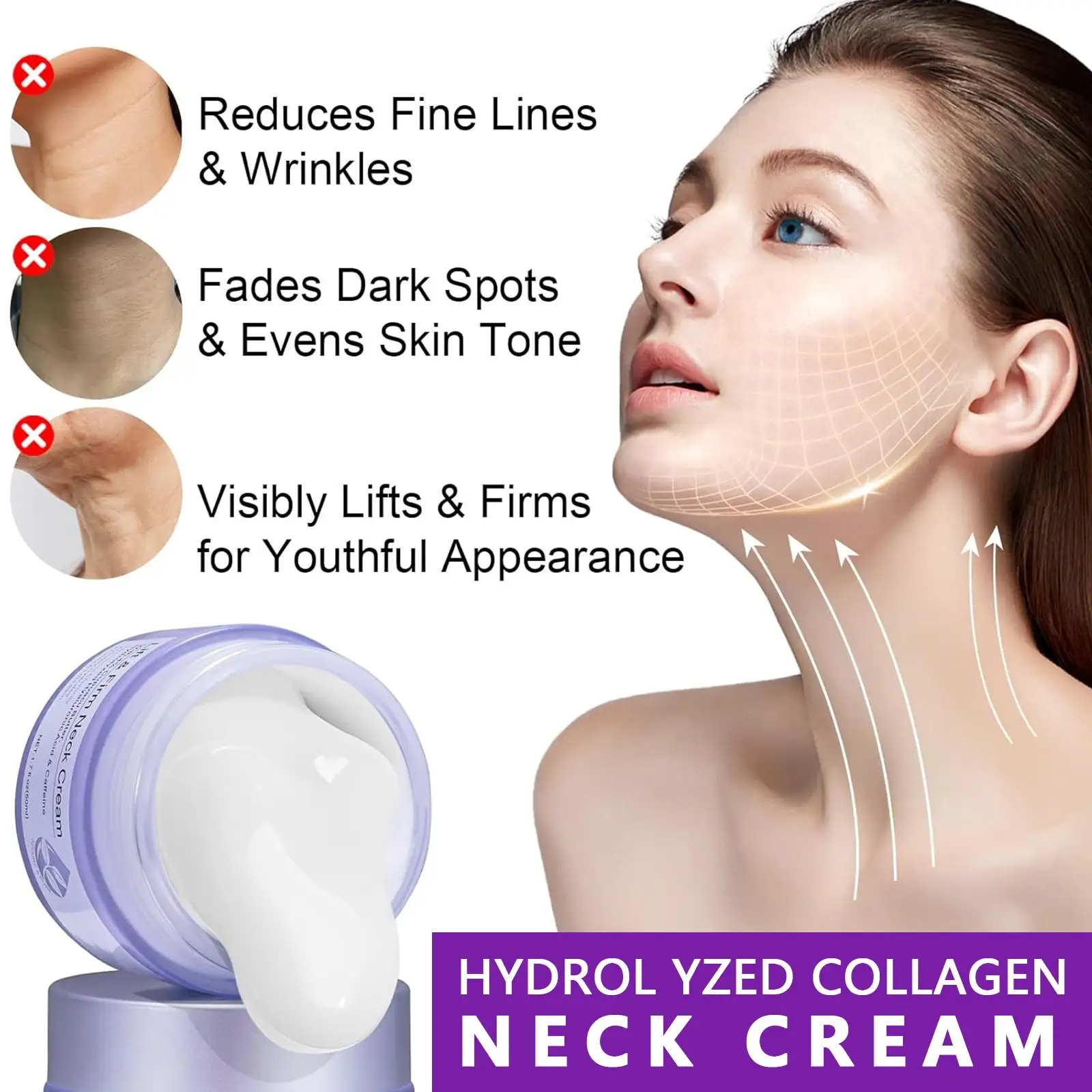 Active ingredients stimulate collagen production, tightening the skin, lifting the neck area, and reducing the appearance of fine lines and wrinkles for a smoother, more defined contour.
