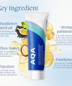 AQA is a high-concentration retinol product that helps stimulate collagen production in the skin. Collagen is essential for maintaining skin’s firmness and elasticity, and by boosting its production, AQA helps to reduce the appearance of fine lines and wrinkles.