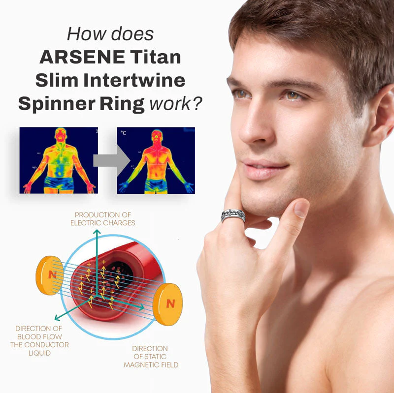Typical magnetic products either use magnets with minimal magnetic field penetration or cause like poles to repel, creating a dead zone between the magnets. ARSENE TitanSlim Intertwine SpinnerRing uses an Alternating North-South Polarity Orientation to maximize the magnetic field flow and also release the electromagnetic charge to offer for remove blockages around the body and restore a natural flow of energy.