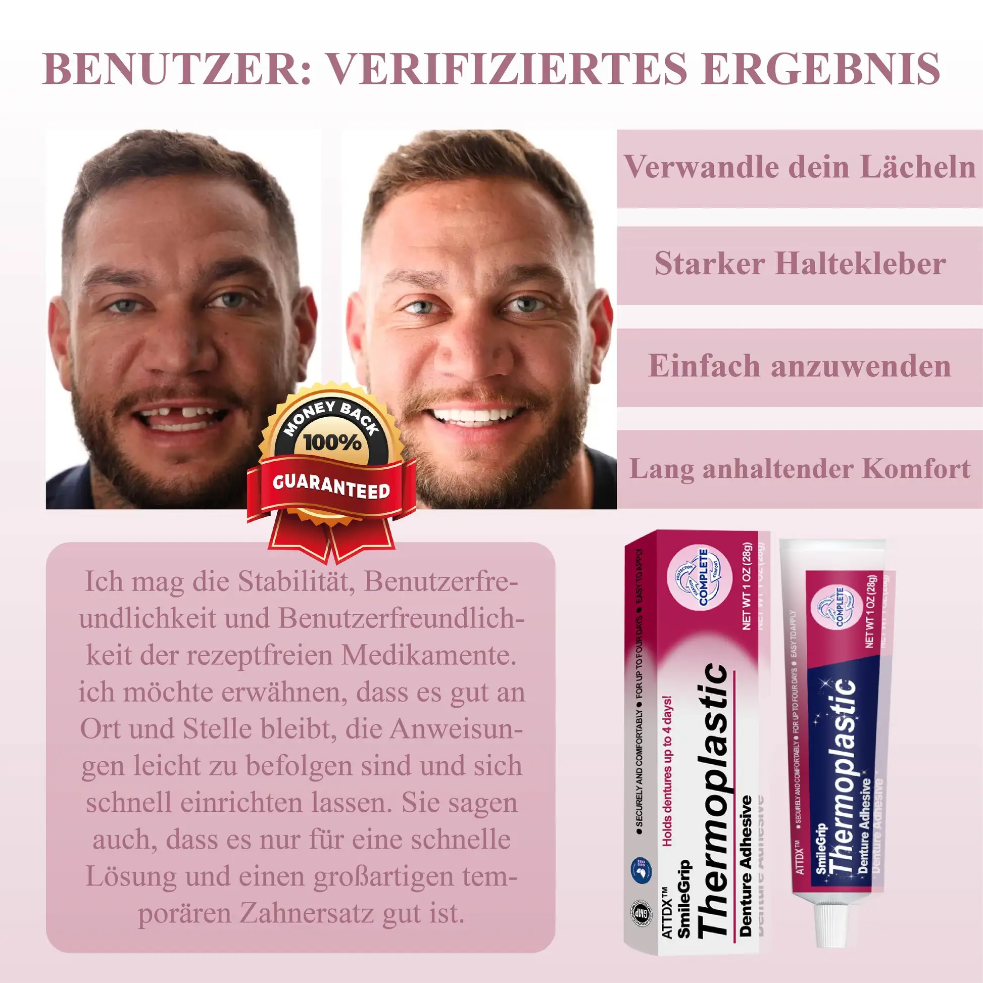 Package Includes: 1 x ATTDX™ LächelnGriff Thermoplastisches Haftmittel für Zahnprothesen