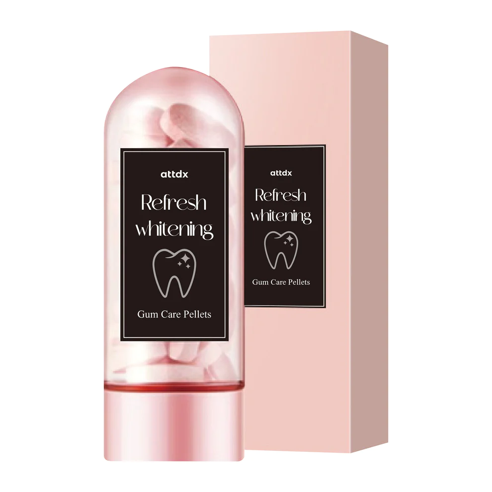 Discover the invigorating freshness of ATTDX Refresh Whitening GumCare Pellets: your ultimate solution for radiant smiles and dental repairs in one gum care powder.