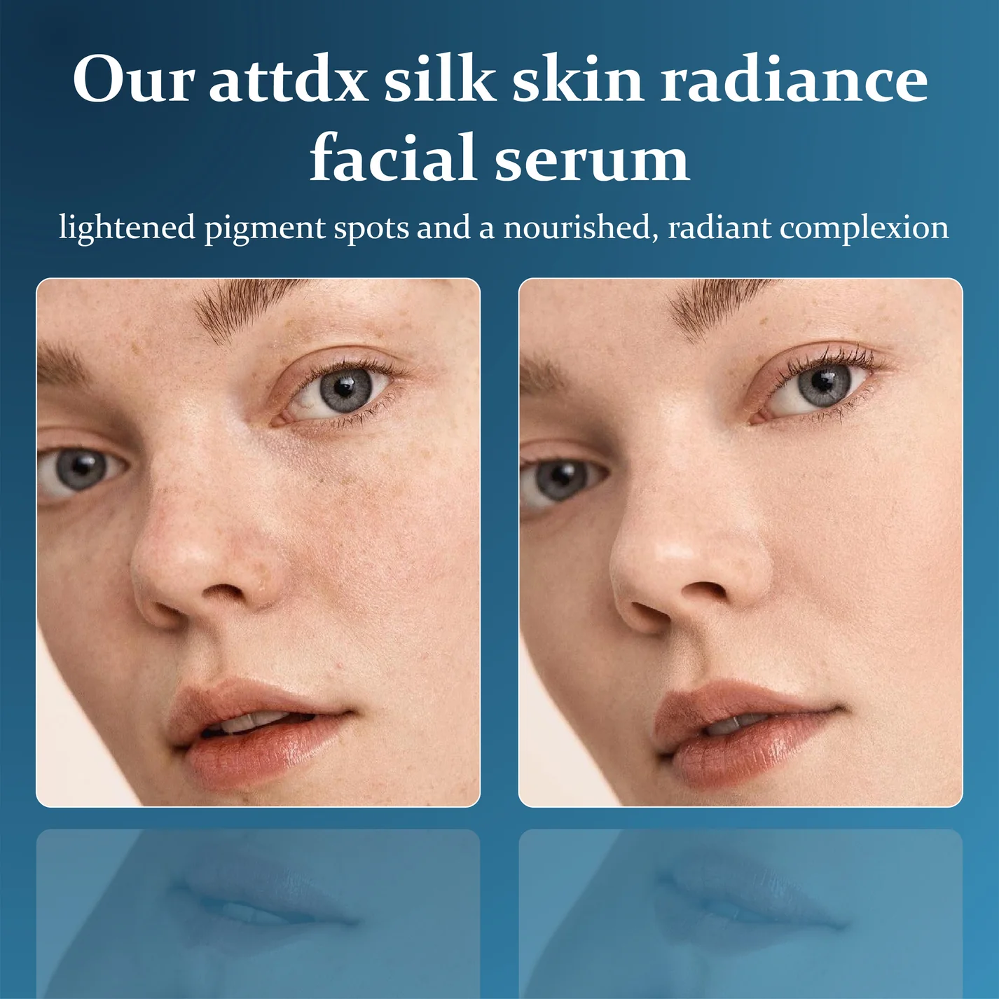 Rejuvenate your skin and defy aging with ATTDX SilkSkin Radiance Facial Serum. Harnessing powerful anti-wrinkle properties, this serum targets fine lines and wrinkles, restoring your skin’s youthful vitality. Experience a transformative journey as age spots fade, revealing a flawless, radiant complexion.