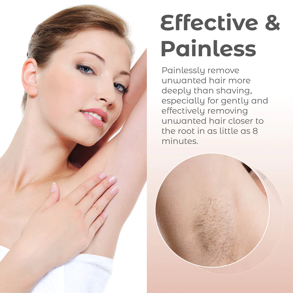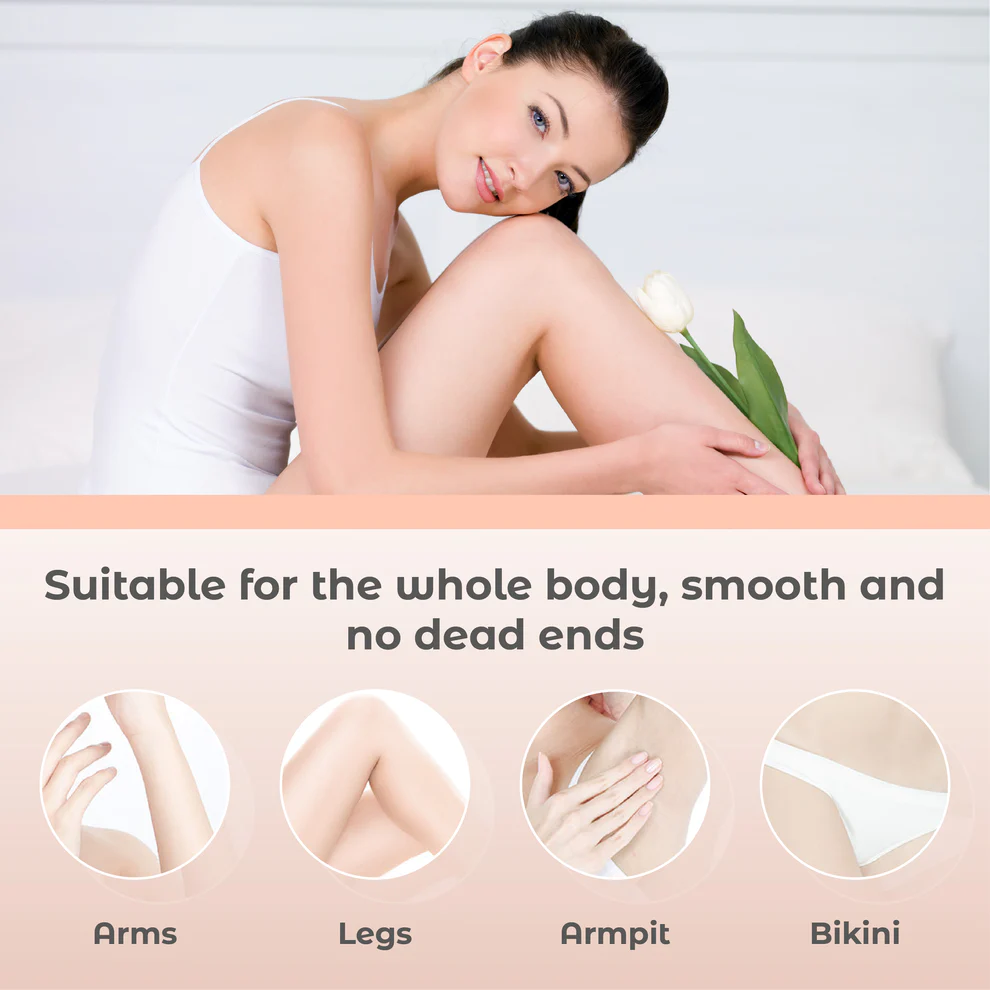 Experience flawless skin with our revolutionary hair removal solution, eradicating stubborn black spots and ensuring a clean, thorough removal process. Say goodbye to worries about thicker regrowth as our advanced formula tackles hair at the root, promising finer regrowth over time. Transform your hair removal experience from frustrating to flawless with our innovative solution, delivering smooth, radiant skin with every application.