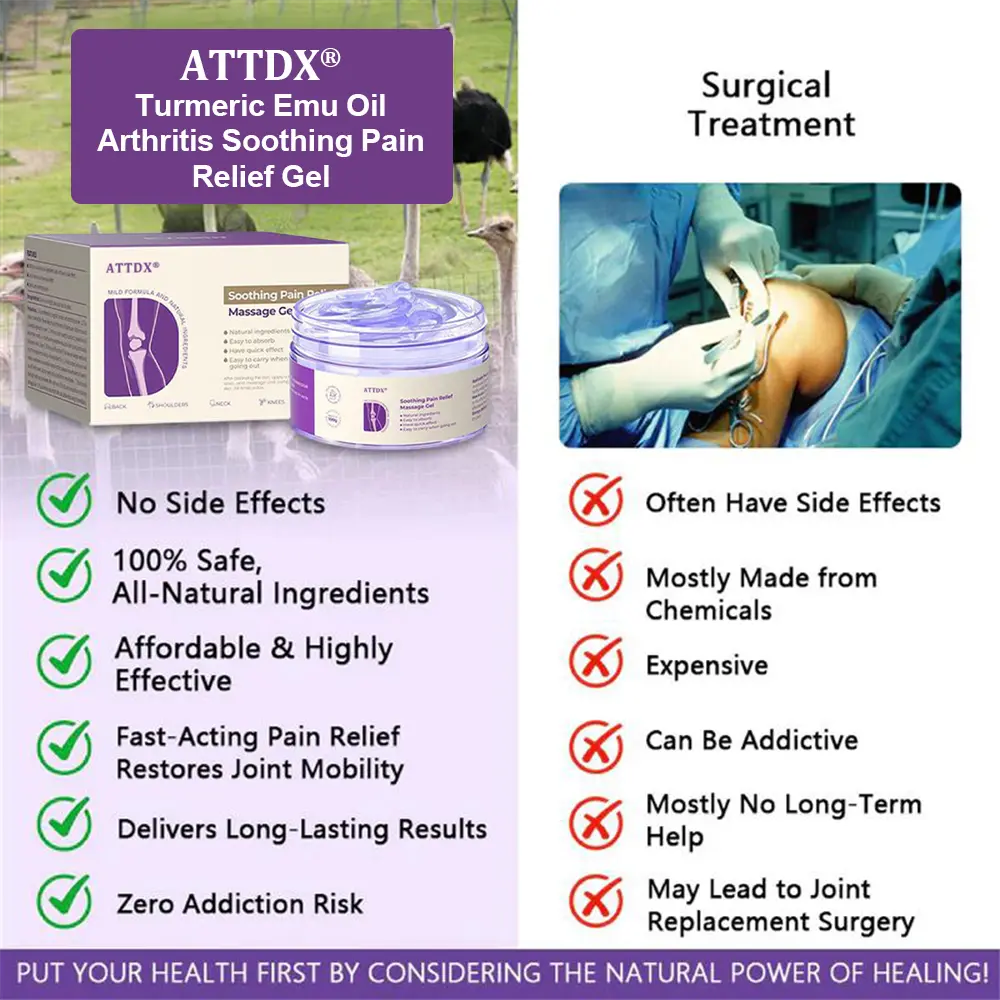 Package Includes: 1 x ATTDX® Turmeric Emu Oil Arthritis Soothing Pain Relief Gel