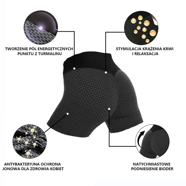 Baicloud™ Ion Przewiewne Szorty Podnoszące i Modelujące masują i uwalniają jony, które stymulują produkcję kolagenu, powodując zanikanie luźnej skóry i nadmiaru tkanki tłuszczowej z pośladków. Dzięki temu opadające i zdeformowane pośladki mogą zostać ujędrnione i podniesione!