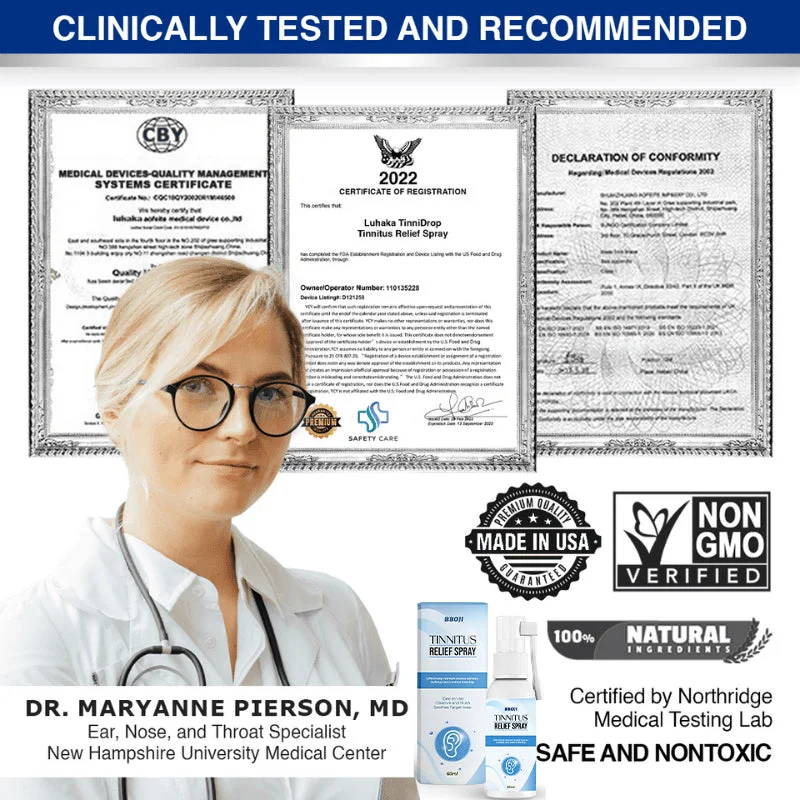 This Tinnitus Relief Spray is extremely gentle, effective, and made with premium therapeutic-grade ingredients. It works by stimulating the body’s natural defenses rather than just masking symptoms like ringing, buzzing, roaring, and humming in the ears.