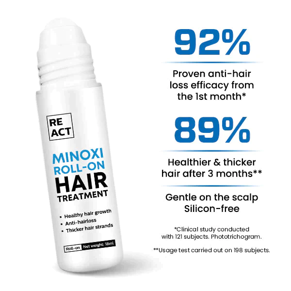 Re:ACT Exalted Minoxi Roll-On Hair Treatment is a groundbreaking formula offering proprietary, award winning ingredients scientifically proven to increase the appearance of hair density while reducing signs of shedding to bring you thicker, fuller looking hair.