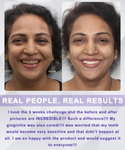 ”I’ve always been a bit not confident about my yellow teeth. I also suffered from a toothache that wouldn’t go away no matter how hard I tried to ignore it. I went to the dentist and was told I had periodontitis, an infection of the gums that required intensive dental treatment. I was scared and didn’t know what to do. By chance, my friend recommended Teetclean™ Mouthwash Tablets and after 4 weeks of use. My yellow teeth are now brighter, my toothache is gone, and my gums are healthy and pain free. I am so grateful that this product saved me. I now feel more confident and proud to show off my smile.“