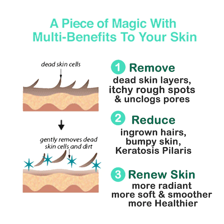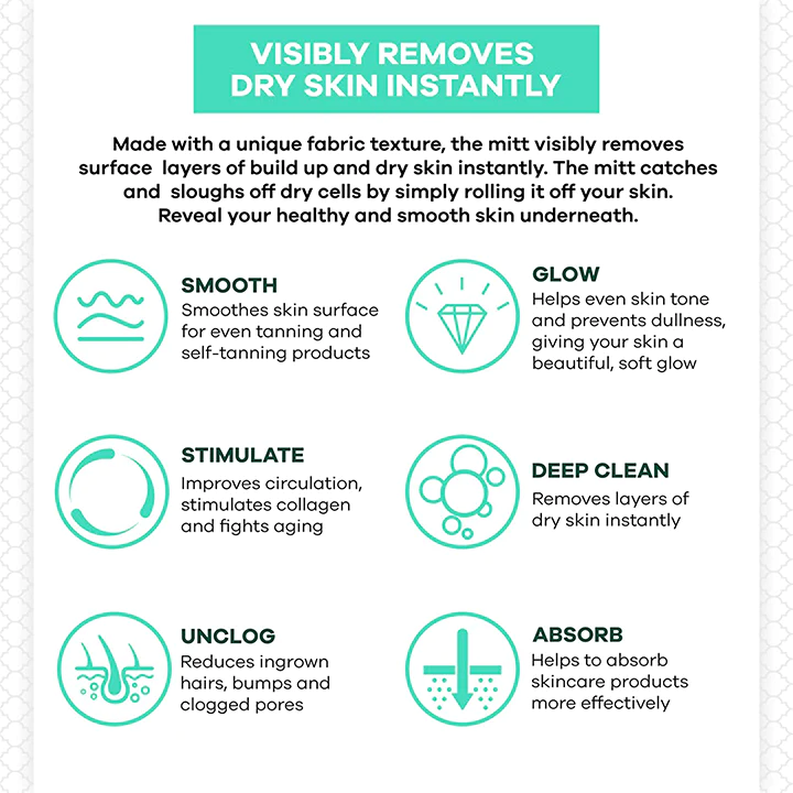 The hand glove design makes it easy to exfoliate my entire body. The textured mitt is gentle and non-irritating on my skin. And believe me, it will give you a smoother and softer skin in just one use and improve skin texture and bumps with regular use!