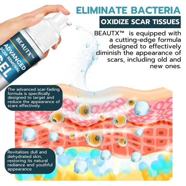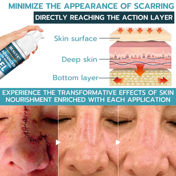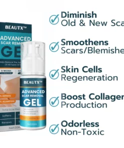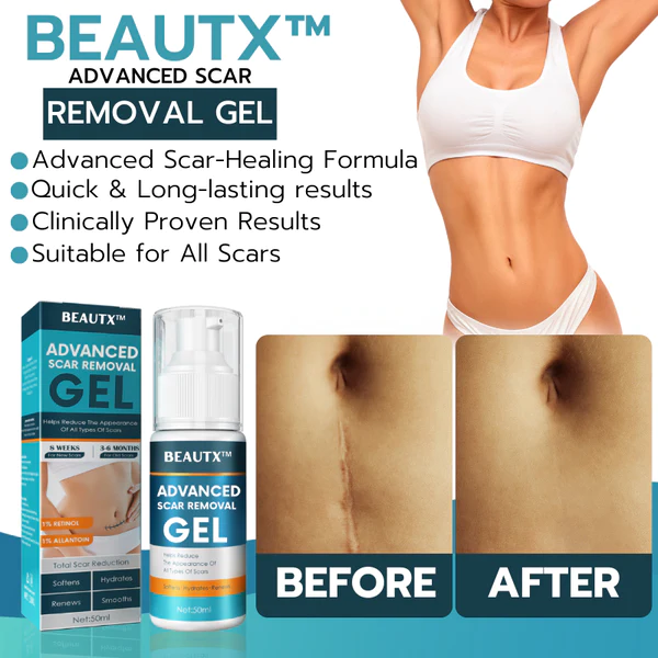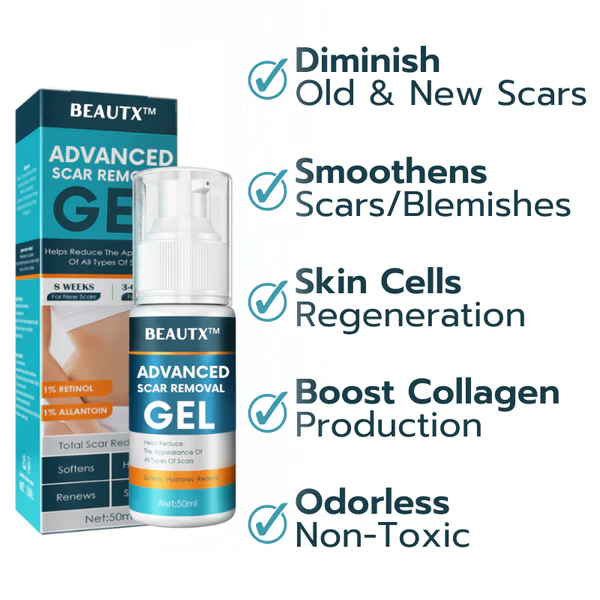 BEAUTX™ Advanced Scar Removal Gel offers unique qualities that alleviate strain on scars by moisturizing the top skin layer, creating a moisture barrier, and assisting in regenerating and remodeling connective tissue beneath the scar.