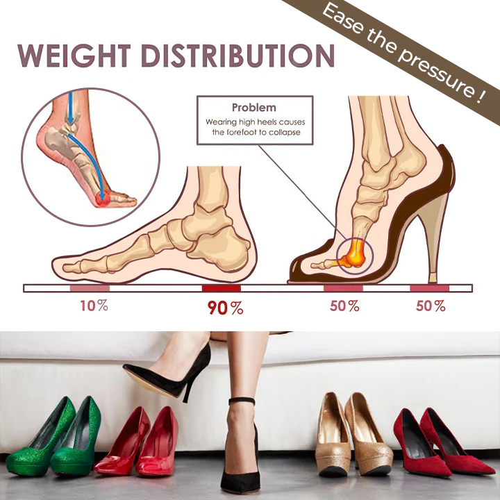 Our High Heels Forefoot Cushion Pad is ergonomically designed to absorb the shock that your forefoot and toes experience from wearing high heels, reducing friction, pressure, and stress on your feet. Inserting these highly durable and soft cushions into your shoes helps prevent and ease pain due to callus, bunions, blisters, chafed skin, and other foot conditions, so you can walk with ease, comfort, and confidence!